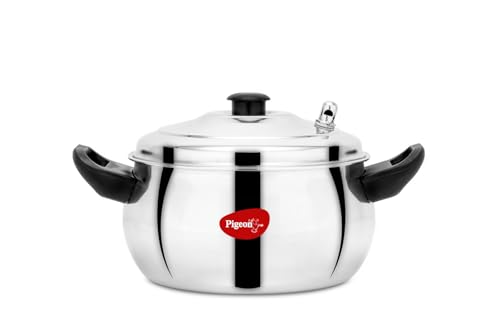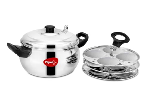 Pros: can be used on a gas stove as well as induction stove. Handle provided to lift the idli mould out of the vessel