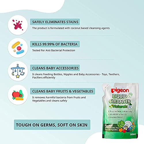 Pigeon Liquid Cleanser for Baby Toys & Vegetables – Gentle, Natural Formula for Safe Cleaning – Food-Grade, Fragrance-Free, 200 ml – Pack of 2…