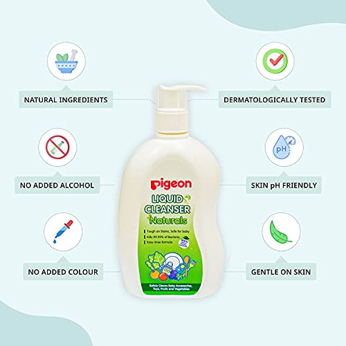 - Pigeon Liquid Cleanser is ideal for cleaning feeding bottles, Nipple/Teats, Pacifiers, Feeding Accessories & Toys as well as fruit and vegetables, etc