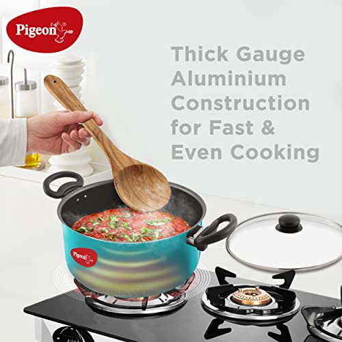Pigeon Master Chef Non-Stick Aluminium Cookware Set Non-Induction Base Includes (3 Sauce Pan – 1 L, 1.5 L & 3 L, Fry Pan & 3 Glass Lid) – 7 Piece (Blue)
