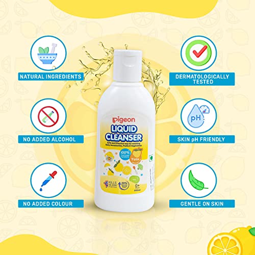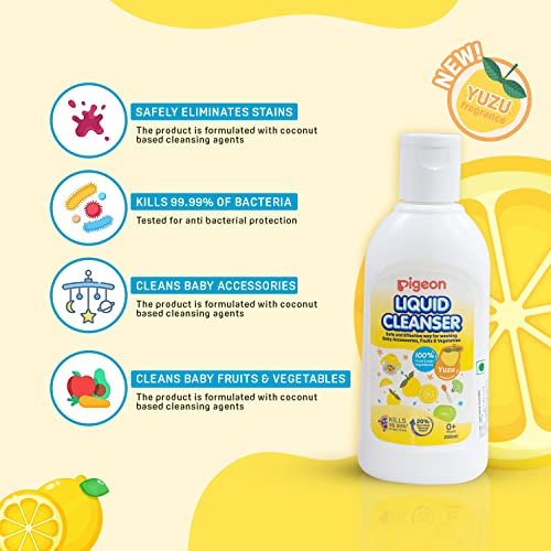 Pigeon Natural Baby Liquid Cleanser Anti-Bacterial Protection Liquid Cleanser,Baby Bottle,accessories,fruit and vegetables (Yuzu 200 Ml Bottle)