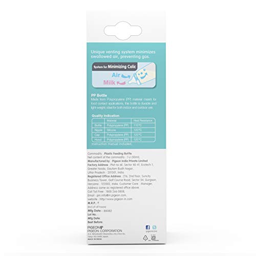 - Pigeon Peristaltic Feeding Bottle is ideal for 0+ month babies and made from durable quality plastic