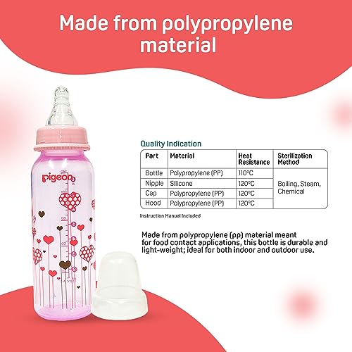 - Pigeon Peristaltic Clear Feeding Bottle nipple is stretchable and allows easy sucking and wide movement of the baby’s tongue