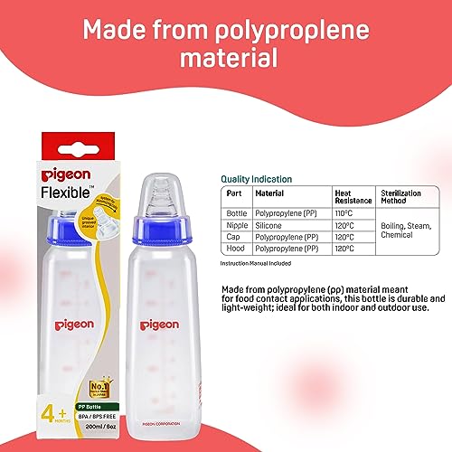 - Pigeon Peristaltic Feeding Bottle is ideal for 4+ month babies and made from durable quality plastic