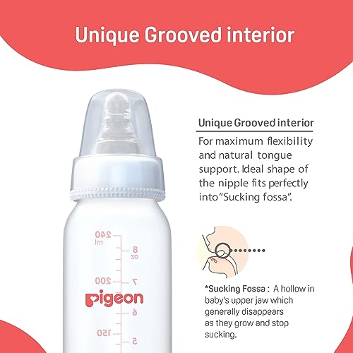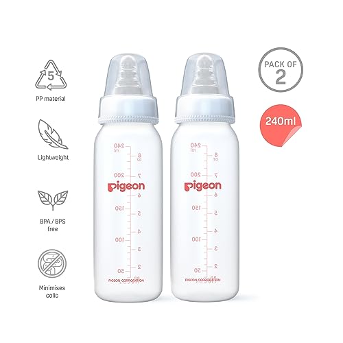 - Pigeon Peristaltic Feeding Bottle is ideal for 4+ month babies and made from durable quality plastic