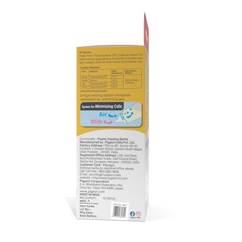 - Pigeon Peristaltic Feeding Bottle is ideal for 0+ month babies and made from durable quality plastic