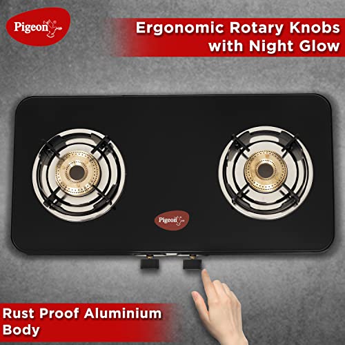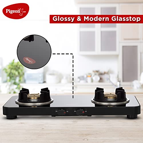 Pigeon by Stovekraft Sleek 2 Burner Ultra Slim Gas Stove with Glass Top, Manual, Black, (14763)