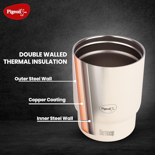 Pigeon Thermocup 350 ml: Stainless Steel Vacuum Insulated Coffee Cup/Tumbler for Hot and Cold Drinks, BPA-Free, Leak-Proof, Coffee Mug with Double Lid – Ideal for Car,Home,…