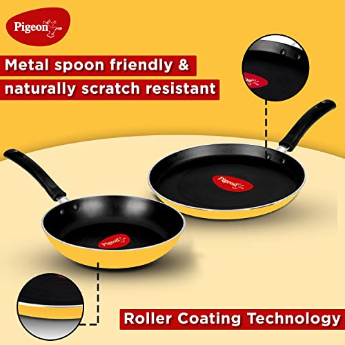 Pigeon Twin Pack Non-Stick Tawa & Fry Pan Cookware Combo – Yellow