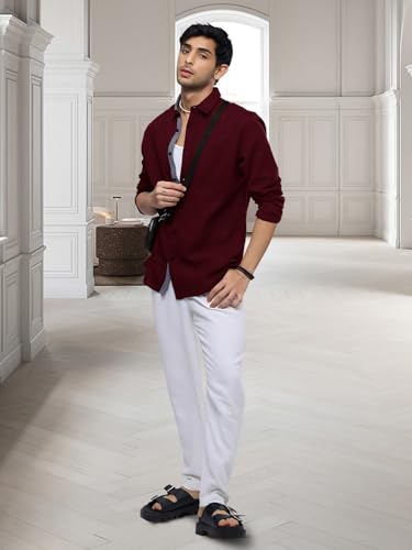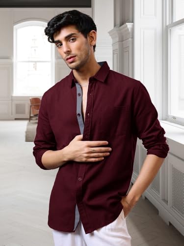 Pinkmint Casual Shirt for Men Stylish Men’s Shirt Soild Regular Fit Long Sleeve Formal Wear Purple