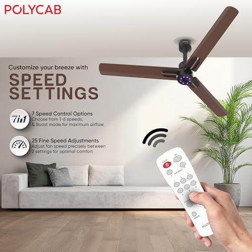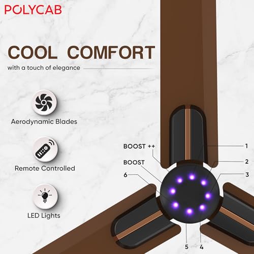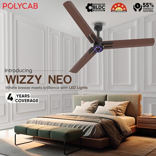 POLYCAB Wizzy Neo LED 1200mm 5-Star BLDC, Remote Ceiling fan for Living Room | 8 Purple LED Speed Indicator | 55% Energy Saving, High Air Delivery,…