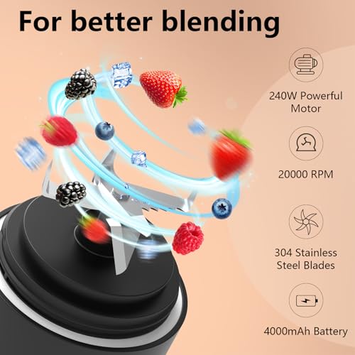 Portable Blender Travel Individual Smoothies Blender Cordless 20oz Juicer Rechargeable Mini Blender for Shakes