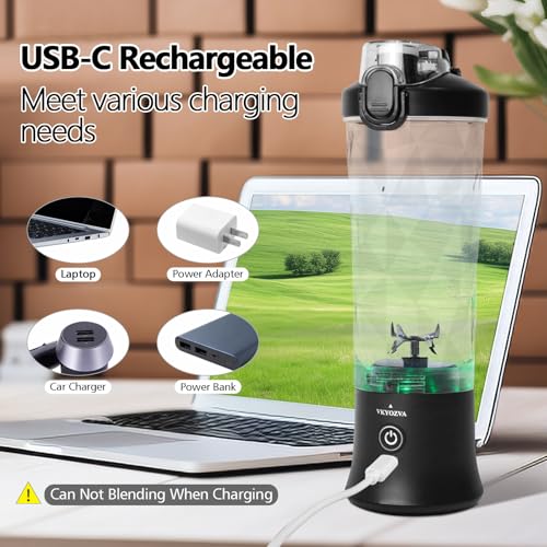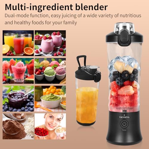 - USB-C Rechargeable Convenience: The VKYOZVA mini blender features a USB-C waterproof charging port, powered by a built-in 4000mAh battery pack. A full charge takes 3 to 5 hours and provides enough power for 25 cups of juice. Say hello to blending freedom with compatibility across devices, from your laptop to your car. Charge Anywhere, Blend Everywhere