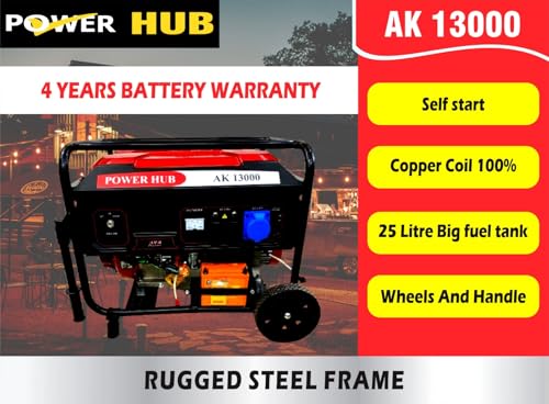 POWER HUB AK13000-10000 Watts OR 10KW Powered Self Start With Heavy Duty Engine|Home & Commercial Use|Single Phase|Petrol Generator|Life Time Spare…