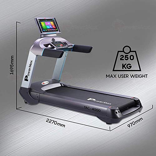 PowerMax Fitness TAC-4000 (6HP) Commercial AC Motorized Treadmill with Auto-Incline, Max User 250, Top Speed 25kmph, 47cm Colourful Screen, 24…
