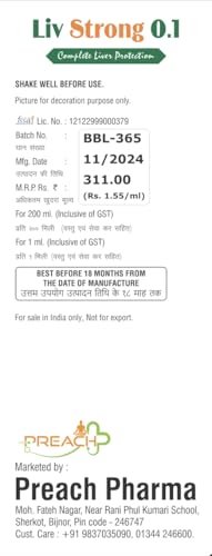 Preach Pharma Liv Strong 0.1 L-Ornithine L-Aspartate, Silymarin, Niacinamide, Vitamin B6, Sodium Selenate, Vitamin B12 Folic Acid & Tricholine…