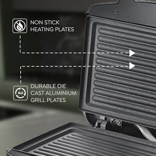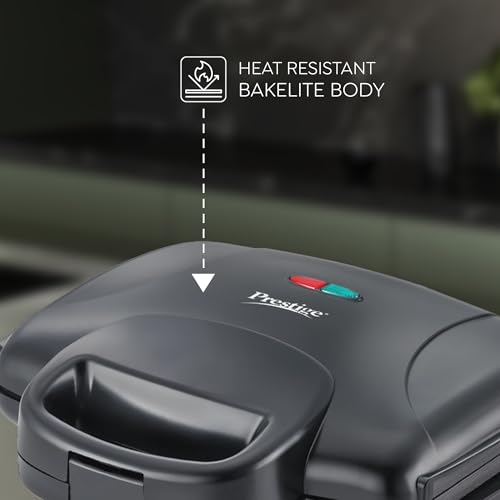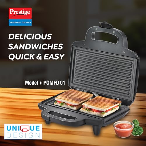 Prestige 800W Sandwich Maker (PGMFD 01)| Black | Heat Resistant Bakelite Body |Non-Stick Coating | Power Indicators | Oil Free Toasting