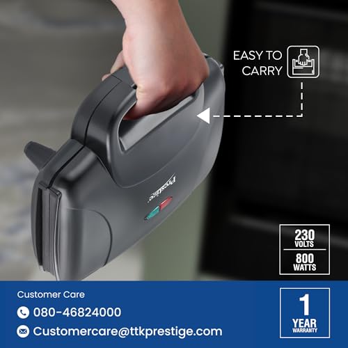 Be the first to review “Prestige 800W Sandwich Maker (PGMFD 01)| Black | Heat Resistant Bakelite Body |Non-Stick Coating | Power Indicators | Oil Free Toasting” Cancel reply