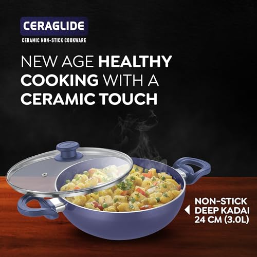 - Available in different sizes: The Ceraglide kadai comes with a glass lid in different capacities 3L(24cm),4.5L(28cm),5L(30cm) for various cooking needs.