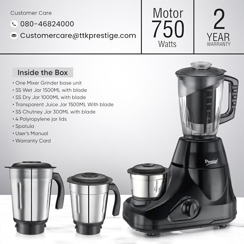 purchased Prestige Iris Pro 750 watt mixer grinder after months of research for my mom who was tired of using old mixer grinder. The previous one has several issues such as lid fitting, low capacity and performance. Also, the plastic was not good. But this Prestige Iris pro 750 Watt mixer grinder has sturdy built and high performance. Also, the lids fit properly.