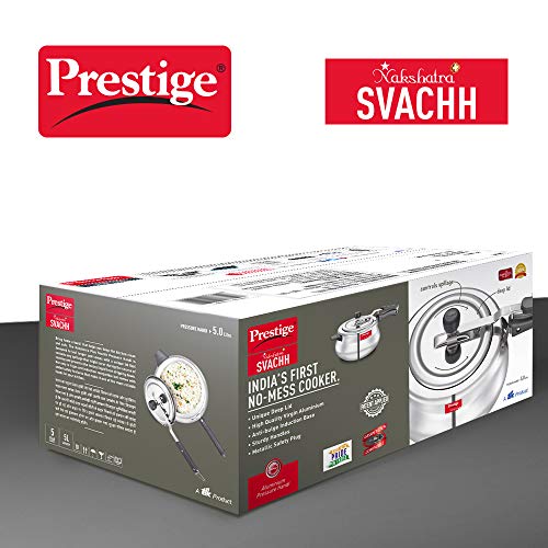- The Nakshatra Plus Svachh Pressure handi is designed to last longer and comes with a unique lid that contains any spillage that might occur during the course of cooking and prevents the messy liquid from dripping down.