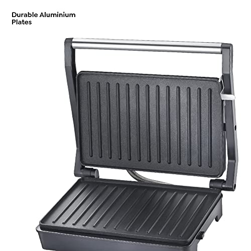 Impressed with the sturdy build and eye-catching dual-tone finish. The durable aluminum grill plates deliver reliability, while the power and ready indicators enhance convenience. Its compact, portable design with a large handle makes it a breeze to use. The superior non-stick coating ensures even heating, making cooking both easy and healthy. Overall I’m totally impressed with the quality.