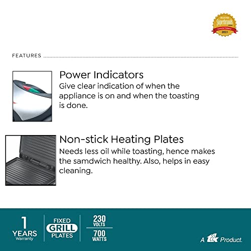 Product is too small. Useful only for toasting and not for sandwich making as if u keep layers it won’t lock. Was using for toasting for 3 months. One day kept one cheese slice between two bread slices and tried to close. The entire piece broke along the length which is holding the clip . No more can be used. The entire outer casing gets heated and have burnt my hands few times when trying to opeb