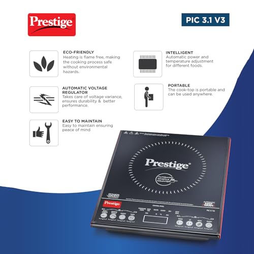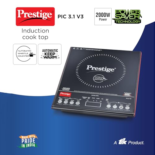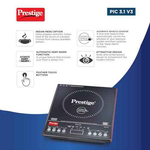 Prestige PIC 3.1 V3 2000 Watts Induction Cooktop | Black |Automatic Whistle Counter | Touch Panel | Indian Menu Options | Voltage Regulator |…