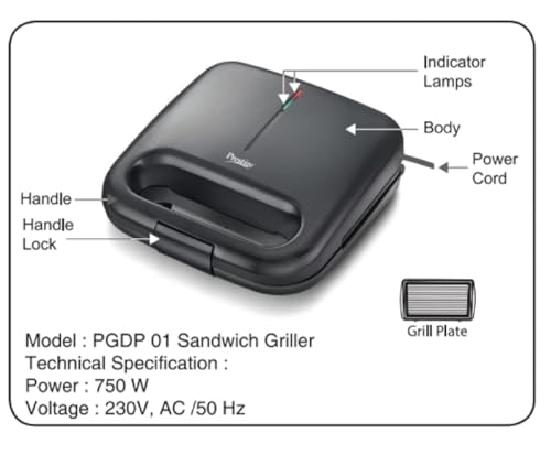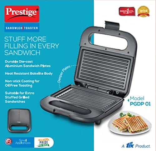 Prestige Sandwich Toaster With Fixed Grill Plates – Pgdp 01, Black, Small, 750 Watts