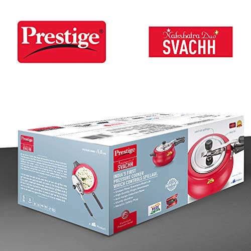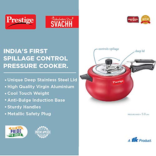 Prestige Svachh, 10753, 5 L, Nakshatra Duo Red Handi, With Deep Lid For Spillage Control, Aluminium, Inner Lid, 5 Liter