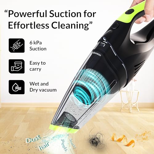 Roboson VC201 Handheld Cordless Vacuum Cleaner for Home and Car Powerful 6 kPa Suction for Dust & Pet Hair Removal, Rechargeable Wireless Wet/Dry…