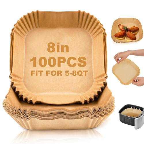 RUCON® Air Fryer Paper Sheets Disposable Liner for Microwave Oil-Proof Parchment for Frying Baking Cooking Roasting and Microwave (Square 8 Inch…