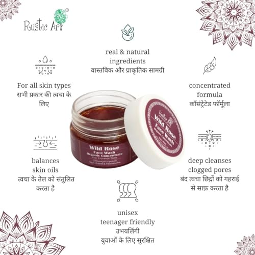 Rustic Art Organic Wild Rose Face Wash Concentrate | Normal to Dry Skin | Enriched with Mango Butter | 50g
