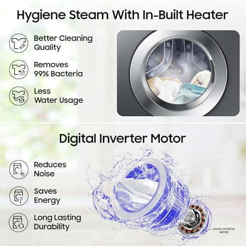 Samsung 7 kg, 5 star, EcoBubble Technology, Hygiene Steam with Inbuilt Heater, Digital Inverter, Fully-Automatic Front Load Washing Machine…