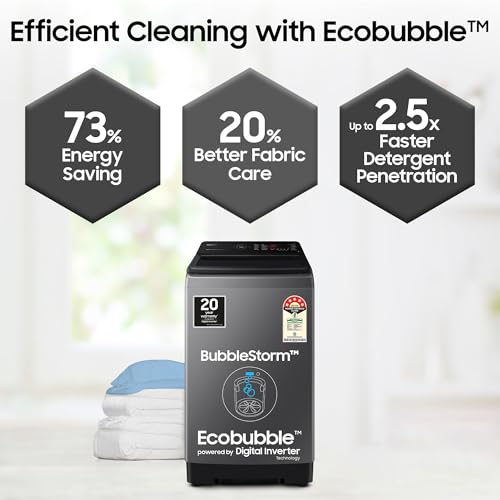 - Fully-automatic top load washing machine with Ecobubble technology, Wifi and Soft Closing Door: Affordable with great wash quality, Easy to use
