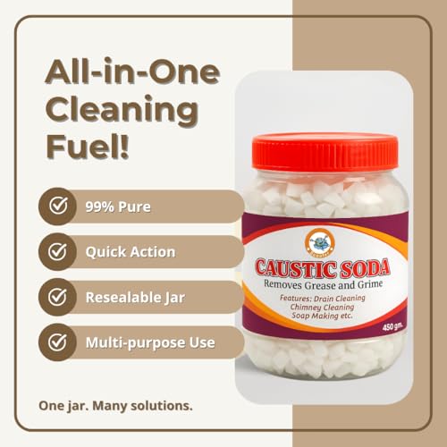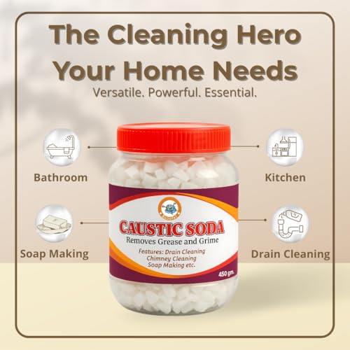 Scoofer Caustic Soda for Soap Making, Drain Cleaning, Chimney Cleaning– Fast-Acting Formula to Clear Blockages Instantly – 450 Grams