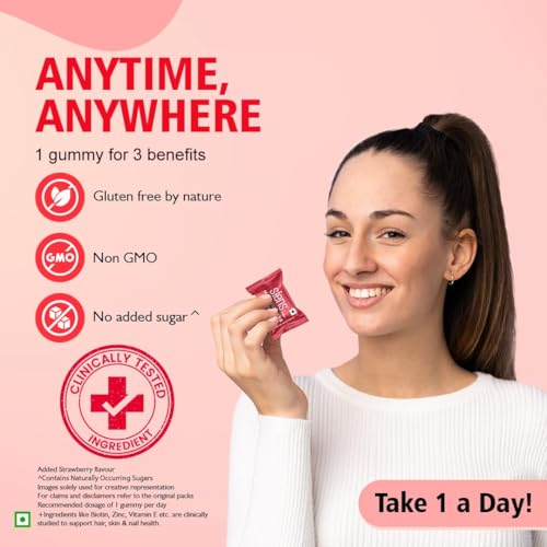 - BIOTIN HEALTHY HAIR GUMMIES: Enriched with Biotin from natural source Sesbania extract, Zinc and essential vitamins to support stronger, healthier hair and control hair fall.