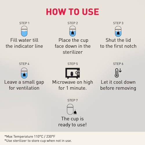 - All-in-One Solution Sterilize + store your cup in the same case to maintain hygiene between uses.