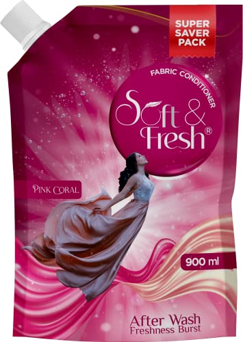 Soft & Fresh combo Pack of Pink Coral & Blue Wave 2X900ml, best Fabric Conditioner softener increase Freshness and softness 900ml refill pouch Pack…