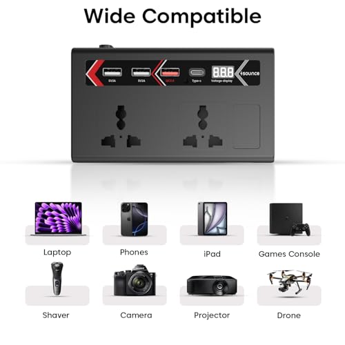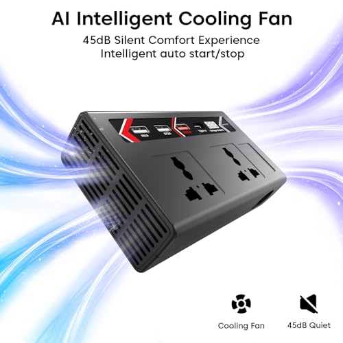 - ✅ 【Smart Cooling Fan for Safe & Reliable Operation】 The built-in intelligent cooling fan operates silently during normal conditions and automatically adjusts its speed as the temperature increases. This ensures efficient heat dissipation and prevents overheating, allowing for extended, stable performance. The integrated fuse adds an extra layer of safety, making this car power inverter a must-have for long drives, outdoor adventures, and daily commutes.