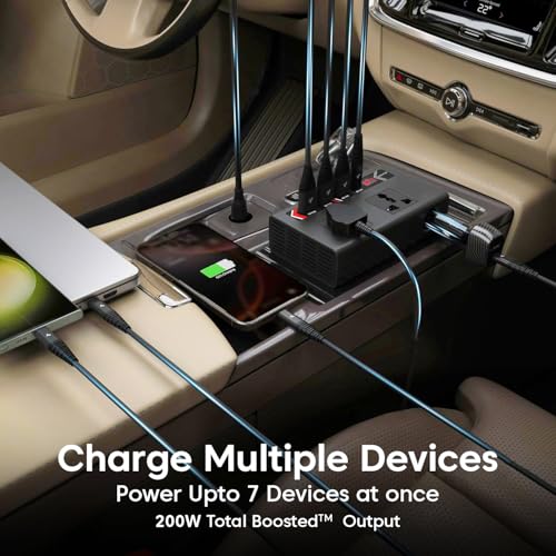 Sounce 200W Car Power Inverter – 12V DC to 220V AC Converter with Dual AC Outlets, 3 USB Ports (3.1A Max), 24W PD Type-C, Fast Charging Adapter for…