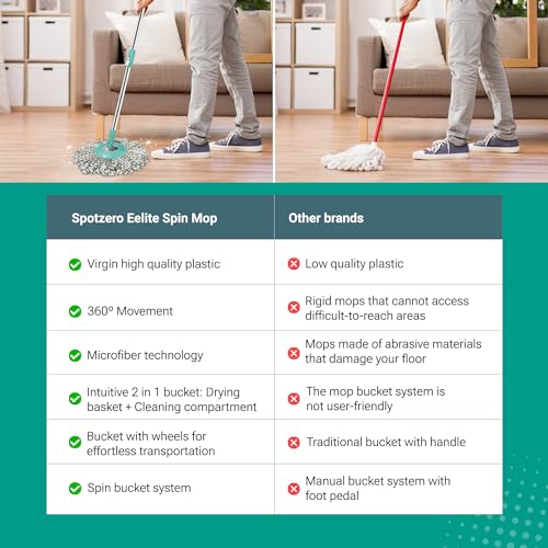 - Package Contents: 1- Piece Elite spin mop set comes with 2 pcs big wheels; 1 stainless steel mop rod; 2 high quality microfiber mop refill