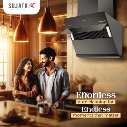 Sujata 1650 m³/hr Chimney for Kitchen 90cm | 15 Yrs Warranty on BLDC Motor & 5 Yrs on Product | Filterless Autoclean Kitchen Chimney for Home, 9 Speed Motion Sensor, Low Noise Level (Diamond Black)