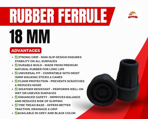 Sunbeam Enterprises® Crutch Tip | Crutch Rubber Ferrule | Walking Stick Shoes Ferrule (2 – Piece) Size -18mm