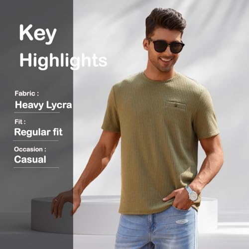 TAGDO Men’s Waffle Knitted Crew Neck Regular Fit Tees (5154)