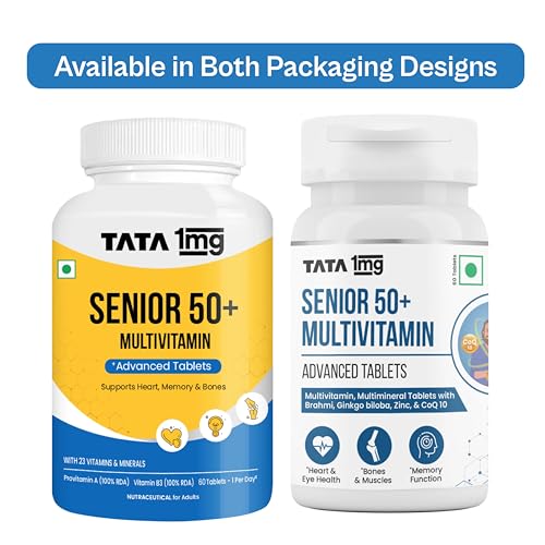 Tata 1mg Senior 50+ Multivitamin & Multimineral Veg Tablet with Calcium for Bone, Skin, Eye, Immunity, Heart & Joints, For Men & Women, Non-GMO &…