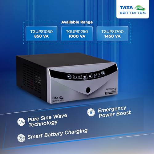 - Inverter Capacity: Rated Input Voltage: 220VAC, Maximum Output Current: 10A, Capacity: 1450VA/1080W, Wide Mains Input voltage range (90V to 290V), Wide Operating Frequency Range (41Hz~ 59Hz), Model Name: TGUPS1700, Intelligent Toggle Option for Battery Types (Tubular/SMF), SMART Battery Charging ASSC Technology for longer battery life
