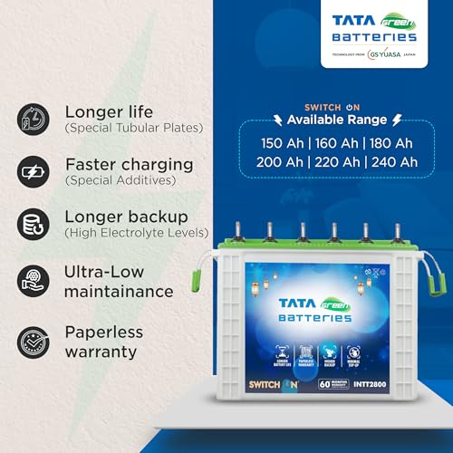 Add a review “Tata Green Inverter & Battery Combo (Switch ON Pure Sine Wave 1450VA/12V Inverter INTT280072 240AH Tall Tubular Inverter Battery) for Home and Office” Cancel reply