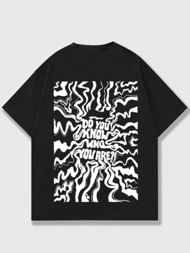 THALASI Gen Z Back Printed Oversized T Shirts for Men – (Black, Round Neck, Baggy Loose Fit & 100% Cotton) – Latest Back Print Tshirts for Men &…
