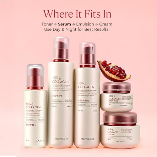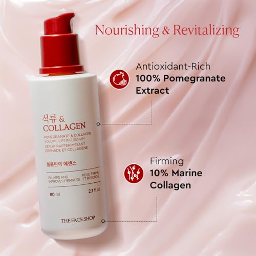 - The Face Shop Pomegranate And Collagen Volume Lifting Serum is a highly concentrated firming serum that absorbs into the skin effectively to leave the skin looking and feeling lifted